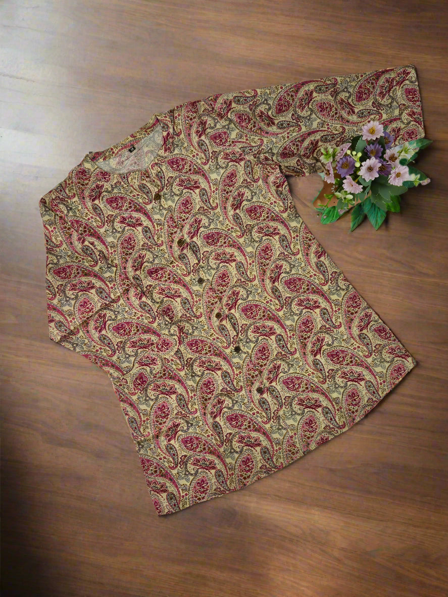 Elegant Paisley Print Bamboo Silk Short Kurti