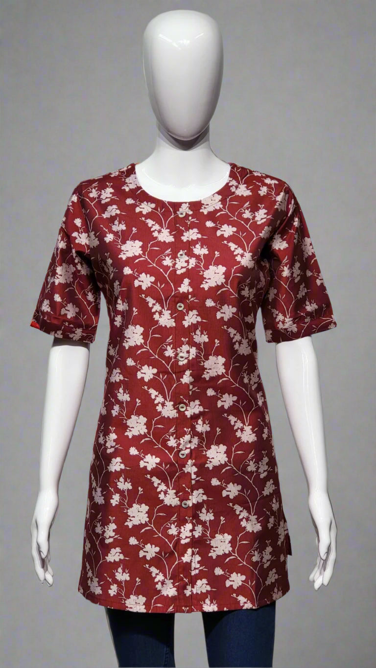 Maroon Floral Printed Kurti in Silk