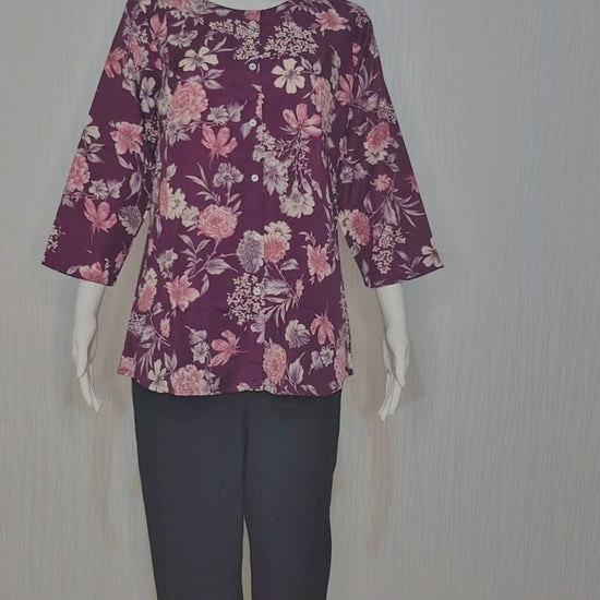 Maroon Mix-Cotton Floral Kurti