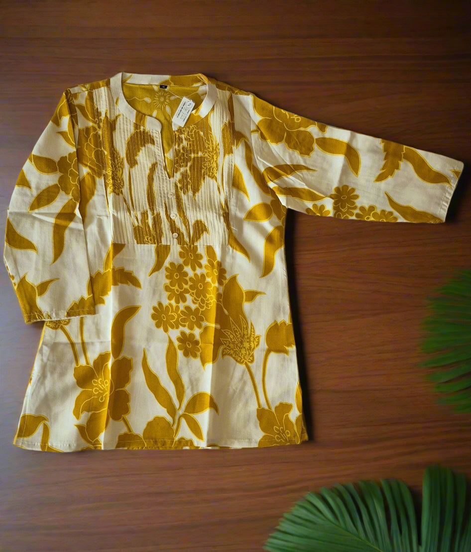 Floral Printed Short Kurti Poly Cotton crafted from breathable poly cotton, this kurti ensures all-day comfort while maintaining a polished look.